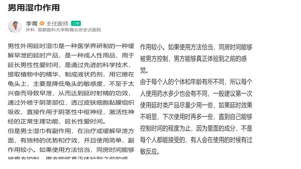 二,使用方法:在夫妻生活之前,将其涂抹于龟头、冠状沟和包皮。(详看人之助男用湿巾用法,往下拉)